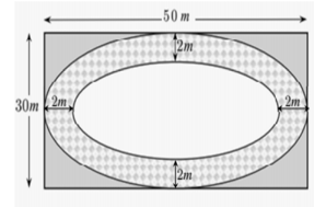 Câu 20: Một sân chơi dành cho trẻ em có dạng hình chữ nhật với chiều dài 50m và chiều rộng 30m. Người ta làm một con đường nằm trong sân (như hình vẽ). Biết viền ngoài và viền trong của con đường là hai đường elip. Kinh phí để làm mỗi