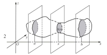. Giả sử hàm số $y=S(x)$ liên tục trên đoạn [a; b]. Khi đó, thể tích V của vật thể (H) được cho bởi công thức:
