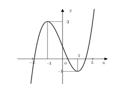 có đồ thị như hình dưới đây. Các giá trị của m để phương trình $x^{3}-3x+1-m=0$ có ba nghiệm phân biệt là: