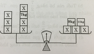 Câu 19: Biết cân đang thăng bằng. Khối lượng của mỗi cái hộp có đánh dấu X là: