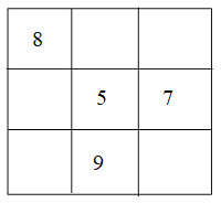 Câu 19: Trong hình vuông trên có năm số còn thiếu ở 5 ô trống. Biết rằng tổng của ba số trên các hàng, các cột và các đường chéo đều bằng nhau. Hỏi cần phải chọn số nào trong các số sau để điền vào một trong các ô trống?