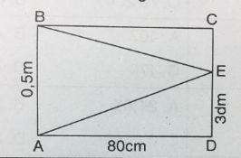 Câu 17: Cho hình chữ nhật ABCD và các số đo ghi trên hình đó. Hãy tính diện tích hình tam giác BCE