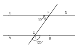 Biết ∠CFE = 55°, ∠E1 = 125°, khi đó: