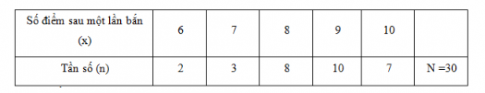 Một xạ thủ thi bắn súng. Số điểm đạt được sau mỗi lần bắn được ghi lại trong bảng dưới đây: