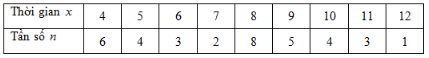 Theo dõi thời gian làm 1 bài toán (tính bằng phút) của lớp 7A, thầy giáo lập được bảng sau: