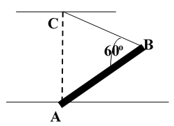 Câu 15: Thanh AB được đặt như hình vẽ có đầu A tựa trên sàn, đầu B được treo bởi dây BC. Biết BC = AB = a. Xác định điều kiện của giá trị hệ số ma sát giữa AB và sàn để AB cân bằng.