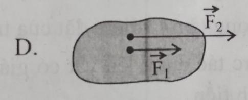 Câu 3: Bai cái thước đặt trên mặt bàn nhẵn nằm ngang chịu tác dụng của hai lực có độ lớn bằng nhau và đều vuông góc với thước được mô tả như hình 22.2. G là trọng tâm của thước. Thước có trọng tâm không chuyển động tịnh tiến là?