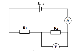 Câu 3: Cho mạch điện như hình vẽ, bỏ qua điện trở của dây nối, biết E = 3V; R1 = 4Ω, R2 = 5Ω, ampe kế có