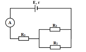 Câu 6: Cho mạch điện như hình vẽ, bỏ qua điện trở của dây nối và ampe kế, E = 6V, r = 1Ω, R1 = 3Ω, R2 = 6Ω, R3 = 2Ω. Số chỉ của ampe kế là