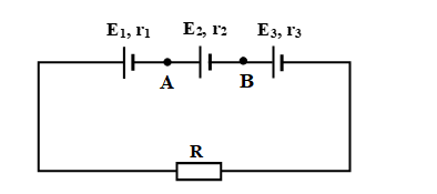 Cho mạch điện như hình 11.9, bỏ qua điện trở của dây nối, biết E1 = 6V, E2 = 4V, E3 = 3V, r1 = r2 = r3 = 0,1Ω, R = 6,2Ω