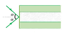 , phần võ bọc có chiết suất $n_{v} = \sqrt{2} $. Chùm tia tới hội tụ ở mặt trước của sợi với góc $2\alpha $ như hình vẽ. Tìm điều kiện α để các tia sáng của chùm sáng truyền được trong ống