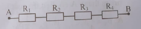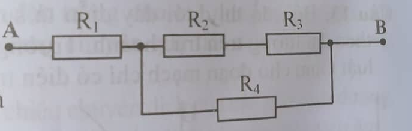 Câu 17: Mạch điện AB gồm các điện trở có sơ đồ như hình vẽ. Biết R1=1\Omega , R2=2\Omega , R3=3\Omega , R4=20\Omega