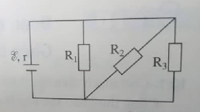 Cho mạch điện như hình vẽ, R1 = 1Ω, R2 = 5Ω, R3 = 12Ω, E = 3V, r = 1Ω. Bỏ qua điện trở của dây nối.