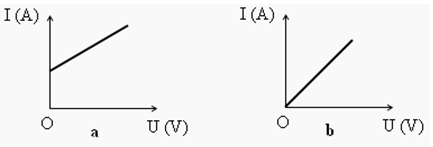 Câu 19: Đồ thị a và b được hai học sinh vẽ khi làm thí nghiệm xác định liên hệ giữa cường độ dòng điện và hiệu điện thế đặt vào hai đầu dây dẫn. Nhận xét nào là đúng?