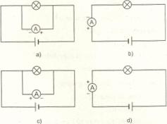 Câu 9: Để đo cường độ dòng điện qua đèn, người ta mắc theo một trong bốn sơ đồ sau. Hãy cho biết sơ đồ nào ampe kế mắc đúng?