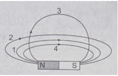 Câu 17: Lực từ tác dụng lên kim nam châm trong hình sau đặt ở điểm nào là mạnh nhất?
