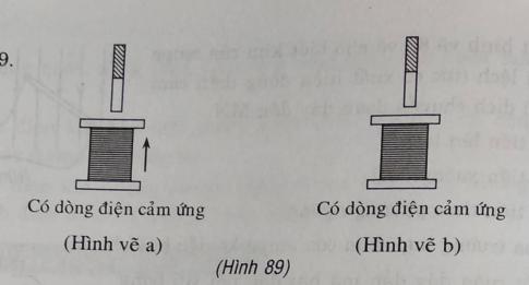 Câu 9: Đặt nam châm nằm yên trước cuộn dây dẫn sao cho lõi sắt lồng vào trong lòng cuộn dây như hình 93. Trường hợp nào dưới đây thì trong cuộn dây có xuất hiện dòng điện?