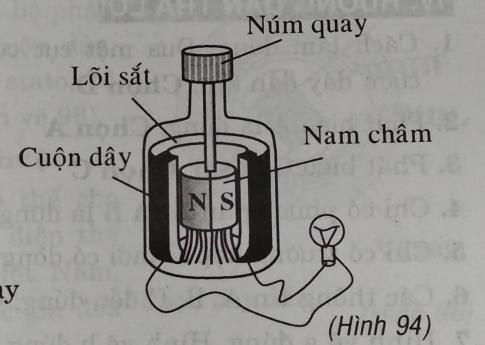 Câu 10: Trên hình 94 là cấu tạo của một đinamô xe đạp đã tháo bỏ một phần vỏ ngoài. Hãy cho biết thông tin nào sau đây là đúng?