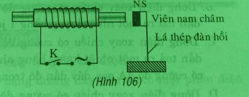 Câu 18: Trên hình vẽ 106 là một viên nam châm gắn trên một lá thép đàn hồi đặt gần một nam châm điện. Hiện tượng gì xảy ra khi cho dòng điện xoay chiều chạy qua nam châm điện?