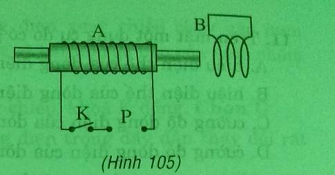 Câu 14: Đặt một nam châm điện A ở trước một cuộn dây kín B như trên hình vẽ 105. Trong trường hợp nào sau đây có xuất hiện dòng điện cảm ứng trong cuộn dây kín B?