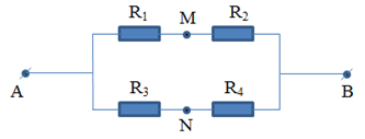 Biết Hiệu điện thế giữa hai đầu đoạn mạch UAB = 60V. R1 = 9Ω , R2 = 15Ω , R3 = 10Ω , R4 = 18. Tính hiệu điện thế UNM