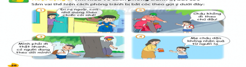 Sắm vai thể hiện cách phòng tránh bắt cóc theo gợi ý dưới đây: