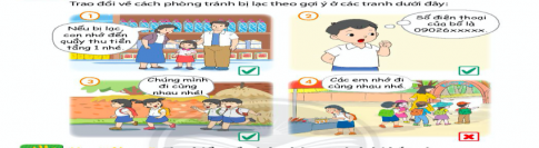 Trao đổi về cách phòng tránh bị lạc theo gợi ý các tranh dưới đây: