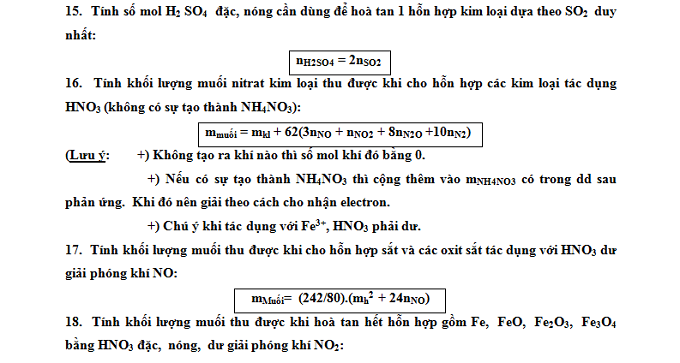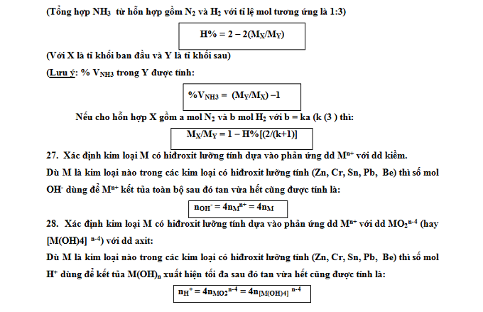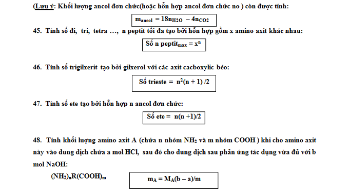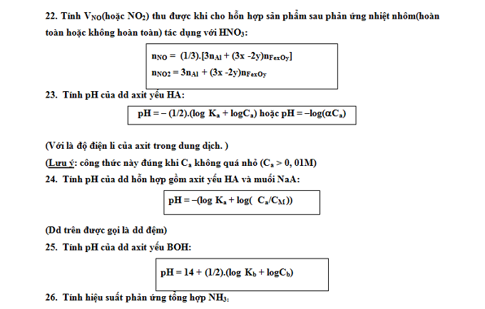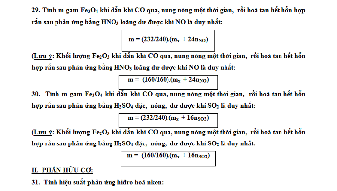 Tuyển tập công thức giải nhanh trắc nghiệm Hóa học chọn lọc