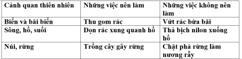 Hoạt động 2: Xác định những việc nên làm và không nên làm để bảo tồn cảnh quan thiên nhiên